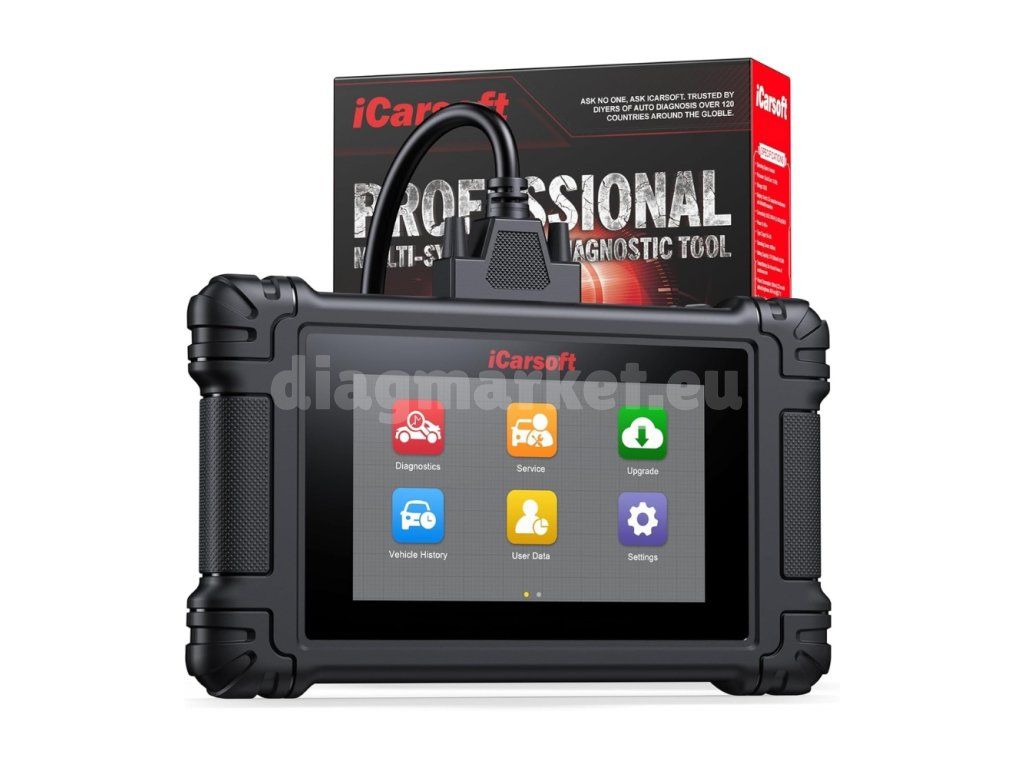 iCarsoft JP V4.0 is a diagnostic tool allowing the connection to all control units of Daewoo, Acura, Honda, Hyundai, Kia, Isuzu, Mazda, Mitsubishi, Infiniti, Nissan, Nissan GTR, Subaru, Suzuki, Lexus, Scion, Toyota vehicles. The device is equipped with 5" touchscreen and is ready to use. Updates of the device software are completely free and are done via WiFi. The device has a wide range of supported languages. Cars from 1996 to 2023 are supported. The instrument allows detailed diagnosis of all units and also offers a large number of service functions such as service interval resets, DPF regeneration, electric parking brake diagnosis and release, injector coding, battery registration and much more. The device is connected to the car via OBD-II cable.